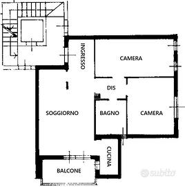 L'appartamento è composto da un comodo ingresso, ampio soggiorno con uscita sul balcone affacciato sul verde, angolo cottura; disimpegno notte, bagno padronale finestrato e due camere matrimoniali;