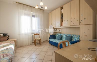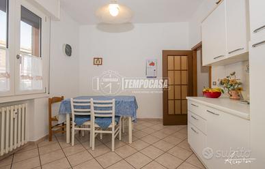 La zona giorno è ben distribuita: da una parte troviamo un cucinotto con tinello, un ambiente raccolto ma molto funzionale, reso ancora più piacevole dalla luce naturale che entra dalla grande finestra. Dall'altra parte, il soggiorno, spazioso e ben separato dalla cucina, con accesso diretto al balcone, un angolo ideale per godersi un po' di relax all'aria aperta.