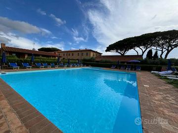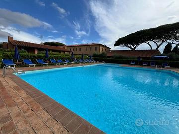 Rif:Vendita-PodSGTrilo1P (112372165) - Bellissimo appartamento in stile toscano, arredato, completo di tutti i comfort. Si trova all'interno del Residence Podere San Giuseppe, un casolare di campagna nella Costa degli Etruschi, tra le colline e il mare. Misura 61 m2, posto auto coperto in garage, al primo piano, soggiorno con angolo cottura e divano letto matrimoniale, camera matrimoniale con letto e poltrona letto singola, seconda camera con due letti singoli, bagno con doccia. Dotato di riscaldamento e condizionamento autonomi. Tutte le unità del residence possono usufruire di servizi comuni: piscina attrezzata, parco giochi, area barbecue con tavoli e giochi (ping-pong e biliardino), palestra, area lavanderia e area per gli amici animali. Il Residence è un luogo ideale per vacanze e relax, a breve distanza da spiagge sabbiose e da San Vincenzo. - Classe: G - IPE: 187.00 kWh/mq anno