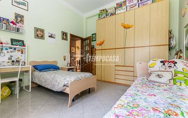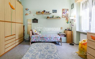 La zona notte è composta da una camera matrimoniale di generose dimensioni e da una cameretta, perfetta come stanza per bambini, studio o camera ospiti. Il bagno finestrato, completo di vasca, garantisce comfort e aerazione naturale.