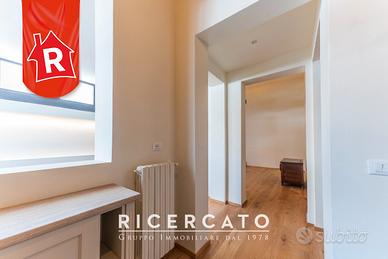 L' immobile disponibile dall' 1 febbraio 2026 si compone da un' ingresso che si apre su un ambiente accogliente che conduce da un lato alla zona giorno, dove troviamo un ampio soggiorno, perfetto per momenti di relax o convivialità, che si estende verso la zona pranzo e la cucina, separata ma ben integrata. Tutta la zona giorno affaccia su una spaziosa terrazza di circa 20 mq, ideale per pranzi all'aperto, letture serali o semplicemente per godersi un po' di aria fresca nel cuore della città. Proseguendo dall'ingresso, un lungo disimpegno accompagna alla zona notte, pensata per garantire privacy e tranquillità. Qui troviamo una camera matrimoniale molto ampia, completa di cabina armadio e bagno privato, perfetta per chi cerca spazi ben organizzati e funzionali; una seconda camera, leggermente più piccola, ideale come cameretta, stanza ospiti o studio e in fine un secondo bagno comune. La classe energetica è C, segno di un buon isolamento termico e di una gestione efficiente dei consumi. Una soluzione abitativa elegante, luminosa e pronta all'uso, ideale per chi desidera vivere in centro senza rinunciare a comfort, stile e funzionalità.