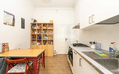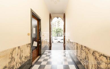 L'appartamento è situato al piano rialzato di un maestoso stabile d'epoca, che domina con eleganza la via grazie alla sua architettura imponente e alla presenza di un'area pedonale antistante che contribuisce a mantenere un ambiente calmo e piacevole. Il contesto condominiale è signorile e ben abitato, curato in ogni dettaglio e recentemente oggetto di importanti lavori di ammodernamento, tra cui il rifacimento del cortile interno e la sostituzione della caldaia centrale, garanzia di efficienza e risparmio energetico.