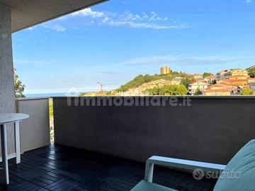 TRILOCALE CON VISTA MARE IN ZONA SERVITA - ACQUAVIVA PICENAFENIXGROUP di San Benedetto del Tronto propone in vendita un accogliente appartamento trilocale situato al terzo piano SENZA ASCENSORE di una palazzina tranquilla in Via Giuseppe Mazzini 9, ad Acquaviva Picena, in posizione strategica e ben servita.La proprietà gode di una splendida vista mare e panoramica che arricchisce ogni giornata con scorci incantevoli e una piacevole sensazione di apertura e libertà.L'immobile, di circa 80 mq, accoglie l'ingresso in un ampio e luminoso soggiorno, impreziosito da un camino, perfetto per creare un'atmosfera calda e accogliente nelle stagioni più fredde.Dal soggiorno si accede direttamente al terrazzo panoramico, ideale per pranzi all'aperto, momenti di relax o semplicemente per godersi la bellezza del paesaggio.Adiacente al soggiorno si trova un funzionale angolo cottura, anch'esso con accesso al terrazzo e dotato di comodo ripostiglio, ottimo per mantenere sempre in ordine l'ambiente.Un disimpegno conduce alla zona notte, composta da una camera da letto singola, e una spaziosa camera da letto matrimoniale arricchita da una cabina armadio che offre ampio spazio per l'organizzazione e il comfort quotidiano. Il bagno ristrutturato, finestrato e ben rifinito, è completo di box doccia.L'appartamento è dotato di riscaldamento termoautonomo con radiatori e cronotermostato, infissi in legno con vetro doppio e porta d'ingresso blindata.La pavimentazione in ceramica, presente in tutta la casa, assicura praticità e uniformità stilistica tra zona giorno e zona notte.Lo stabile si presenta in buone condizioni generali ed è inserito in un contesto residenziale tranquillo ma ben collegato, con tutti i principali servizi raggiungibili in pochi minuti.La posizione elevata dell'immobile non solo garantisce una straordinaria vista panoramica sul mare e sul verde circostante, ma assicura anche silenzio e riservatezza, rendendo questa soluzione ideale per chi cerca una casa da vivere tutto