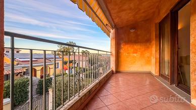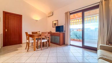 L'appartamento, sito al primo piano, si apre su una zona giorno open space, con angolo cottura riservato, impreziosita da una spaziosa veranda con vista sui monti e sul mare. Il disimpegno conduce alla zona notte, composta da due camere, di cui una singola e una matrimoniale, servite da bagno con doccia, dotato di balcone esclusivo.