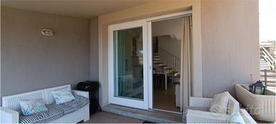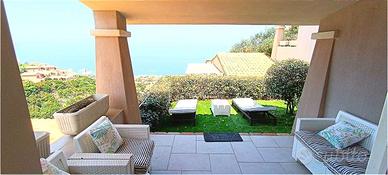 Laccesso avviene tramite terrazzino privato, completo di doccia esterna, perfetto per i rientri dal mare. Lingresso si apre su un ampio living con cucina a vista, ambiente luminoso e accogliente che si affaccia sulla prima veranda coperta, con accesso diretto a un grazioso giardinetto panoramico. Uno spazio esterno arredato e curato, ideale per pranzi allaperto o momenti di relax con il mare allorizzonte.