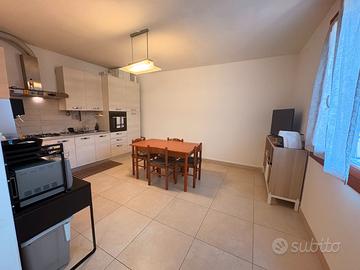 Sala con angolo cottura, 2 camere da letto, matrimoniale e doppia, ripostiglio e ampio bagno vasca e doccia separati.