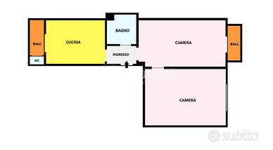 Ingresso su Comodo Disimpegno che collega tutti gli ambienti della casa. Cucinotta Abitabile comodamente arredabile con accesso ad un Balcone con affaccio sul Cortile Interno con annesso un Secondo Bagno. Due Camere da Letto Matrimoniali adiacenti di Ottima Metratura, una Finestrata e l'altra con Balcone che affccia sul Corso Principale. Bagno con Box Doccia.