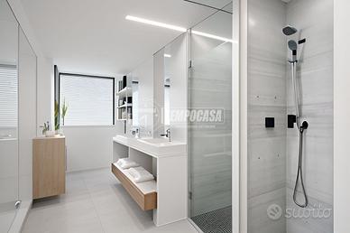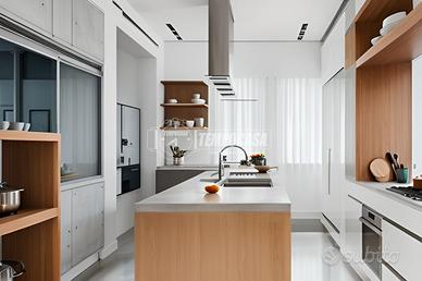 L'immbile può diventare o un trilocale con soggiorno con cucina a vista, 2 camere da letto e doppi servizi (di cui uno cieco e uno finestrato) oppure un ampio bilocale con soggiorno con esposizione angolare (dove ad oggi c'è il coworking) cucina abitabile separata e ampia camera da letto, e anche qui si può pensare di creare un ripostiglio/lavenderia all'ingresso.