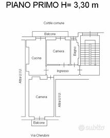 via Cherubini 3 Torino Se stai cercando un appartamento a Torino Nord, questo potrebbe fare al caso tuo. Si tratta di un grazioso trilocale luminoso, situato al primo piano di uno stabile ben tenuto, senza ascensore. L'immobile è composto da ingresso su corridoio, due camere, cucina, bagno e ripostiglio. È in condizioni molto buone, pronte per essere abitato subito e dispone di balconi su due arie, serramenti con vetri doppi e un cappotto termico installato sulla facciata dell'edificio, che aiuta a migliorare l'efficienza energetica. La cantina di pertinenza si trova al piano interrato. La zona è molto comoda, ricca di attività commerciali e ben collegata con i mezzi pubblici. Nelle vicinanze ci sono anche l'imbocco autostradale Torino-Milano e Torino Caselle, tangenziali, ipermercati, ufficio postale, banche e l'Ospedale San Giovanni Bosco. Si vende esclusivamente tramite agenzia immobiliare già incaricata.