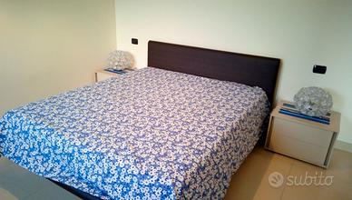 Luxury furnished apartment in Bari near the airport. On the sixth floor, it features 2 bedrooms (double and queen-size), 2 bathrooms with windows, shower and bathtub, eat-in kitchen, large living room, balcony with view, and storage closet.