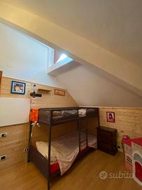 Vendesi trilocale mansardato a Viola St. Gree composto da salone con divano letto e tavola da pranzo con finestrone vista piste da sci, cucinotto con piano ad induzione, corridoio con stufa a pellet, due camere una con letto matrimoniale contenitore e altra con letti a castello, bagno con doccia, finestre nuove in alluminio effetto legno taglio termico, riscaldamento centralizzato con cronotermostato attivabile da remoto. Due cantine con luce e ski box. 4 piano con ascensore. Prezzo trattabile