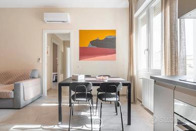 Disponibile dal 01/11/2025 al 15/04/2026, questo accogliente trilocale al quarto piano con ascensore in via Olbia è perfetto per famiglie o gruppi di amici. L'appartamento offre una camera matrimoniale e una con due letti singoli, un soggiorno luminoso con divano e smart TV e una cucina completamente attrezzata con lavastoviglie, macchina da caffè, microonde e tostapane.