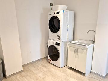 L'appartamento è composto da due camere da letto, due bagni, soggiorno + angolo cottura e lavanderia, l'immobile è privo di balconi.