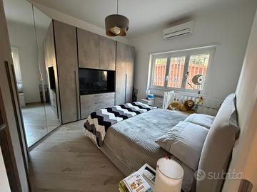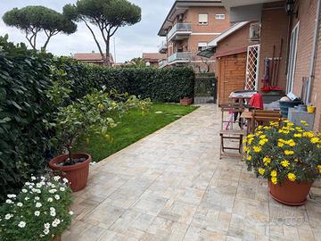 appartamento trilocale di circa 70mq restaurato da all'incirca un (2) anni situato al piano terra, si trova in un prestigioso comprensorio a Morena, immerso nel verde e caratterizzato da un ambiente residenziale tranquillo. La proprietà, disposta su un unico livello, accoglie gli ospiti con un ampio ingresso che da su un grande salone con angolo cottura che collega da un lato la cameretta e dall'altro la camera matrimoniale con al centro il bagno. Le porte finestre presenti nel salotto e nella cameretta conducono a uno spazio esterno di circa 150 mq in parte pavimentato e in parte area verde con area barebecuè. Completano la proprietà una cantina e un posto auto adiacente all'ingresso di casa. Il comprensorio offre servizi esclusivi, quali ampie aree verdi, un campo da tennis e un'area giochi per bambini.