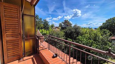 -Soggiorno luminoso con accesso ad ampio terrazzo panoramico con vista a 180° sul verde e scorcio mare.