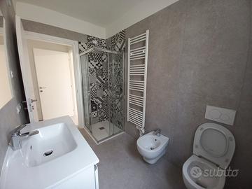 Appartamento nuovo composto da soggiorno cucina, una camera matrimoniale una singola, due servizi finestrati, box , posto auto privato in cortile, cortile esclusivo e balcone. L'alloggio viene affittato con arredo nei bagni, con cucina completa di elettrodomestici nuovi e tavolo con sedie. Sono presenti i pannelli fotovoltaici esclusivi, la pompa di calore per acqua calda sanitaria e per il riscaldamento / raffrescamento. E' inoltre presente il riscaldamento a pavimento e le tapparelle sono tutte elettrificate. Il contesto è molto grazioso ed è composto da sole tre unità abitative senza alcuna spesa condominiale in comune. Le utenze sono indipendenti. Si affitta a referenziati non per periodi brevi.