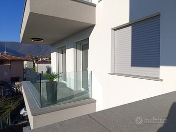 Realizzazione in classe A4 con finiture lussuose con certificazione acustica, serramenti in pvc con triplo vetro e tapparelle elettriche, impianto fotovoltaico potenza 1 Kw per ogni alloggio a servizio dei consumi privati (possibilità di potenziare l'impianto fino a 2,4 Kw), pompa di calore con sistema di riscaldamento e raffrescamento a pavimento con deumidificazione e impianto di ventilazione meccanica a doppio flusso incrociato con recupero di calore ad alta efficienza, impianto domotico per il comando dell'illuminazione, della motorizzazione delle tapparelle e per la gestione della temperatura nelle singole stanze (tutte le funzioni potranno essere gestite da smartphone), videocitofono a colori, predisposizione antifurto perimetrale e volumetrico, serrande della autorimesse con basculanti motorizzate.