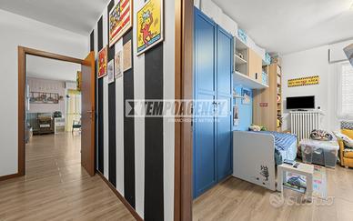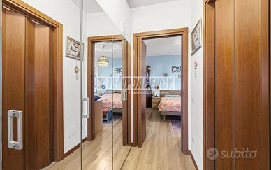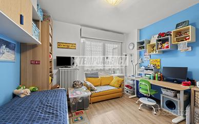 In elegante stabile del 2008 con ascensore, proponiamo trilocale al settimo piano, caratterizzato da straordinaria luminosità e da una vista aperta sullo skyline di Milano, con affacci su via Cascella e via Manzù. L'ingresso si apre su un comodo disimpegno con armadiatura su misura. Il soggiorno, ampio e arioso, è valorizzato da tre grandi finestre che conducono allo splendido terrazzo angolare, vero prolungamento della zona living, ideale per momenti di relax e convivialità. La cucina, separata e realizzata su misura, unisce funzionalità ed eleganza. La zona notte è ben distribuita e garantisce privacy e comfort. Una prima camera, versatile come studio o stanza singola di generosa metratura, è servita da bagno con vasca. La camera matrimoniale, spaziosa e luminosa, dispone di cabina armadio in suite e bagno finestrato con doccia, con possibilità di creare una vera master bedroom riservata. Grazie alla doppia esposizione e al piano alto, l'appartamento gode di luce naturale per tutta la giornata. È dotato di aria condizionata, impianto di allarme e armadiature su misura incluse nel prezzo. Completano la proprietà una cantina e un ampio box singolo di 26 mq, ideale anche come spazio di deposito. Soluzione abitativa di alto livello, perfetta per chi cerca comfort, panorama, modernità e qualità costruttiva in un contesto curato ed esclusivo. - Classe: B - IPE: 51.08 kWh/mq anno