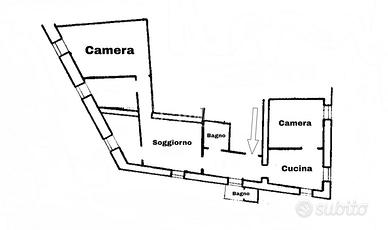 L'immobile presenta ambienti di dimensioni contenute e una distribuzione interna da rivedere, offrendo così un grande potenziale di riorganizzazione degli spazi secondo le proprie esigenze. Attualmente è composto da ingresso, soggiorno, cucina abitabile, uno studio, due camere matrimoniali, due bagni e due ripostigli. A completare la proprietà, una cantina al piano seminterrato, utile come spazio di servizio o deposito.