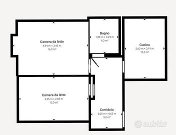 L'appartamento si presenta in buone condizioni generali ed è composto da due spaziose camere da letto, molto luminose, una cucina abitabile con accesso al balcone e un bagno finestrato dotato di box doccia. Gli ambienti risultano ben distribuiti e ariosi, grazie anche alla posizione all'ultimo piano che garantisce tranquillità e un'ottima esposizione.