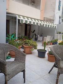 Vendesi zona Sant' Agostino a dieci minuti a piedi dal centro, trilocale nuovo al piano rialzato perfetto e pronto da abitare, nessun lavoro da eseguire. L'appartamento si trova in una palazzina degli anni 90. L'immobile ristrutturato ha una metratura interna di 70 mq con ingresso di 17 mq indipendente con classe energetica A+ . Soggiorno con angolo cottura, andito con armadio a muro su misura, camera matrimoniale, cameretta, bagno con doccia. Tramite la camera matrimoniale e il bagno si può accedere tramite porta finestra in doppio vetro e legno all ampio cortile pavimentato di 65 mq, dove si può godere a pieno e tutto il giorno le belle giornate di sole. Dotata di tende solari, doccia esterna con lavandino, lavatrice e cisterna da 1000l, volendo si può ricavare un secondo bagno. Data l'ampia metratura della terrazza la casa è personalizzabile, per chi preferisce si potrebbe realizzare un giardino vero e proprio oppure ricavare una terza stanza da letto con altrettanto spazio all'esterno. Spese di condominio irrisorie. Dall' estate 2025 il palazzo verrà rinnovato.