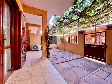 VILLASIMIUS - In via Foscolo, in zona residenziale pianeggiante e vicina ai servizi, all'interno di uno splendido complesso ricco di verde e ottimamente curato, trilocale al piano terra con ampio cortile.