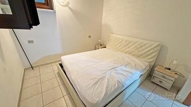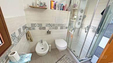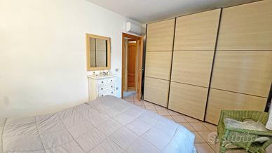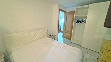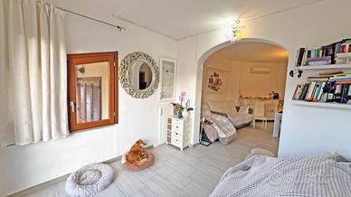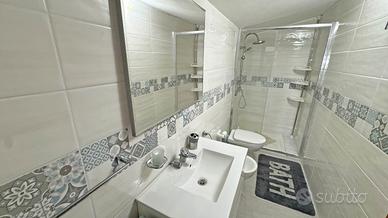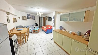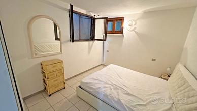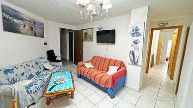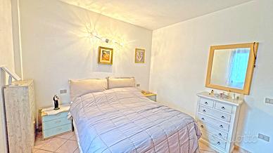 L'appartamento è composto da un ampio soggiorno con doppio ingresso, un angolo cottura funzionale e due camere da letto, una matrimoniale e una doppia. Il bagno è dotato di doccia moderna e l'intero immobile è arredato con gusto e climatizzato per garantire il massimo comfort. Inoltre, il piano interrato offre un ampio vano tramezzato, ideale per ricavare ulteriori spazi, e un secondo bagno completo con ampia doccia, attualmente utilizzato come dependance.