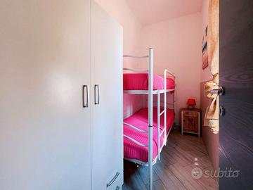 La zona notte è composta da due camere: matrimoniale + castello e la più piccola con solo letto a castello. Presente un bagno finestrato con cabina doccia.
