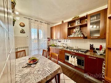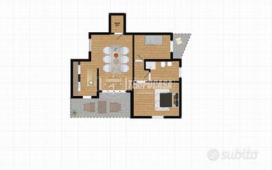 L'immobile è composto da una luminosa zona giorno con area pranzo, cucina abitabile dotata di porta finestra con accesso a un ampio terrazzo, ideale per pranzi e cene all'aperto. La presenza della tenda da sole motorizzata garantisce comfort e privacy, rendendo lo spazio esterno pienamente fruibile.