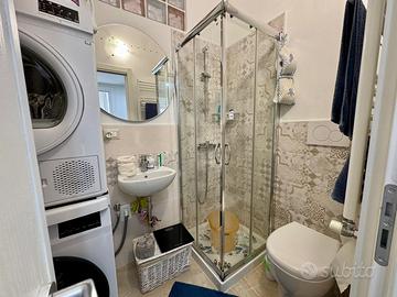 A completare questo immobile, due bagni di cui uno di servizio completo di lavabo, wc e box doccia con angolo lavanderia, mentre il secondo è finestrato completo di sanitari, lavabo e box doccia.