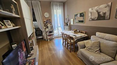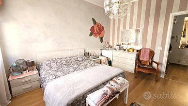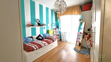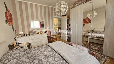 La zona notte ospita due ampie camere matrimoniali, una con uscita diretta sul secondo balcone con teste estive appena installate. Il bagno, finestrato, è completo di box doccia.