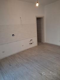 Vendesi in piccola palazzina con poche unità abitative, appartamento completamente RISTRUTTURATO, sito al primo piano senza ascensore e composta da: Ingresso su sala ampia con cucina abitabile ,2 camere da letto matrimoniale, bagno finestrato con Box doccia, ampio balcone delimitato del cancello in ferro A completare la proprietà e Cantina di pertinenza. Alloggio completo di tutto, presente di: porte nuove ,serramenti nuovi in PVC doppio vetro, nr.3 split aria condizionata con pompa di calore HAIER tende da sole ,prezzo trattabile