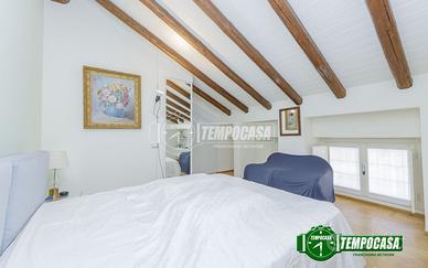 L'appartamento è su due livelli e si trova al primo piano di una palazzina di poche unità abitative, ottimo per chi cerca la tranquillità di un condominio piccolo. Entrando nell'appartamento l'ingresso si apre subito in soggiorno, separato dall'ambiente da una porta scorrevole troviamo un cucinotto e un ripostiglio usato come lavanderia grazie agli attacchi già installati, salendo una scala in legno si accede alla zona notte composta da due camere matrimoniali e un comodo bagno.
