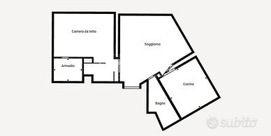 La distribuzione interna è funzionale e accogliente: ingresso, cucina, soggiorno, camera da letto con cabina armadio, ripostiglio e bagno. Gli infissi in doppio vetro garantiscono comfort acustico e termico, la porta è blindata, mentre il riscaldamento autonomo consente una gestione efficiente dei consumi.