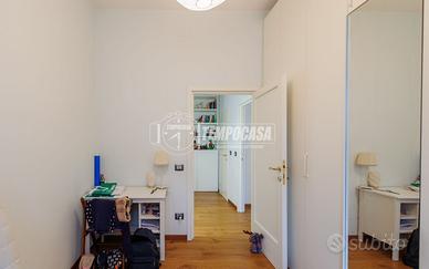 La zona giorno si apre su un soggiorno luminoso, affiancato da una cucina separata che garantisce massima praticità e privacy. Un disimpegno ben organizzato conduce alla zona notte, composta da due camere da letto e due bagni rifiniti con materiali attuali, oltre a un comodo ripostiglio.