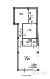 Ingresso su soggiorno con angolo cottura, due camere da letto, ripostiglio, bagno con box doccia e cortile privato.