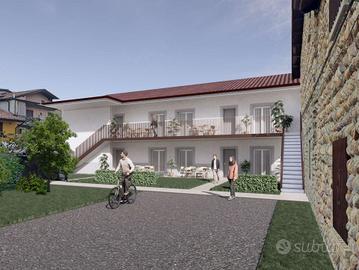 Rif: 32261037-256 (2875445_1) - Nel centro storico di Treviolo, comodo a tutti i principali servizi, disponiamo di questo appartamento trilocale che verrà consegnato completamente ristrutturato. L'immobile è inserito in un contesto storico, in una edificio con sole 4 unità abitative, tutte indipendenti. La corte, verrà completamente ristrutturata e manterrà in una parte uno stile antico, mentre l'edificio dove è situato questo appartamento, sarà moderno. Tramite un arco di accesso, si raggiunge la corte, con all'interno i box, i posti auto scoperti e un'ampia aiuola piantumata. Tramite scala privata si giunge al piano primo, all'ampio terrazzo di 22 mq che da accesso al soggiorno con cucina separata. Nel reparto notte troviamo due camere da letto matrimoniali e due bagni. Modalità di acquisto: € 134.000 per l'acquisto dell'immobile + € 96.000 per i lavori di ristrutturazione dei quali € 48.000 sono detraibili fiscalmente in 10 anni. L'immobile sarà fornito di pannelli fotovoltaici, riscaldamento a pavimento, finestre con doppio vetro in PVC e CAPITOLATO A SCELTA (tra prodotti indicati). - Classe: NC