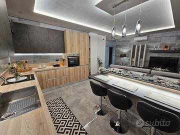 L'immobile oltre ad essere dotato di vari led che combinati al cartongesso creano un'atmosfera suggestiva e raffinata è fornito di elettrodomestici di qualità dalla lavatrice e asciugatrice Samsung ai vari componenti della cucina, che è stata concepita come un'ampia zona living che va oltre il concetto di open space. Al suo centro, infatti è stato inserita una penisola che offre una suggestiva zona relax: dalla colazione, all'aperitivo nulla passerà inosservato da quella posizione.