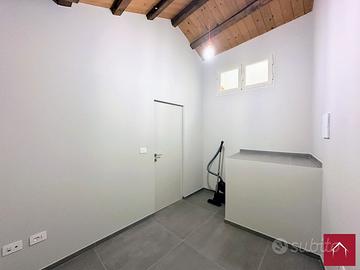 L'immobile è composto da soggiorno open space con primo balcone, lavanderia, piccola cameretta, camera da letto matrimoniale con ripostiglio e secondo balcone, bagno, inoltre è provvisto di porta d'ingresso blindata, infissi a taglio termico, persiane in alluminio, split aria calda e fredda, tetto a vista illuminato, porte a filo muro, sanitari opachi e miscelatori neri, areazione forzata in bagno e boiler per l'acqua calda.