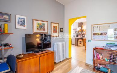 La zona notte, invece, ospita due camere da letto spaziose (per esigenza una camera ad oggi ospita un soggiorno), entrambe con accesso al balcone, e un bagno finestrato che regala luce naturale e comfort quotidiano.