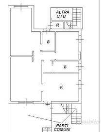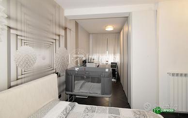 Ingresso su soggiorno, cucina abitabile, disimpegno su zona notte dove troviamo una camerata, una camera matrimoniale con bagno privato ed un secondo bagno.