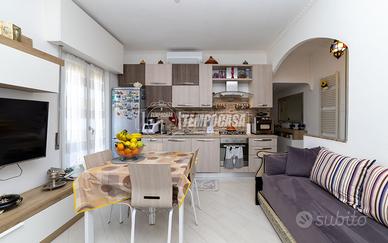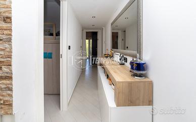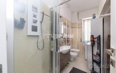 L'appartamento è stato completamente ristrutturato ed è composto da un ingresso che si apre sulla zona giorno con cucina a vista e accesso diretto a un balconcino mentre un disimpegno accompagna alla zona notte dove si trovano due camere da letto e un bagno finestrato, completo di tutti i sanitari sospesi e box doccia.