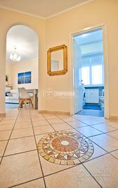 L'ingresso ampio e accogliente introduce un soggiorno luminoso ed elegante, cucina semi abitabile e zona notte che comprende due camere da letto, una matrimoniali ed una singola,