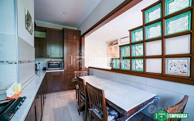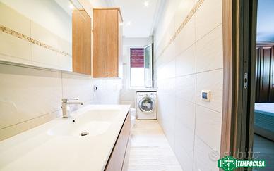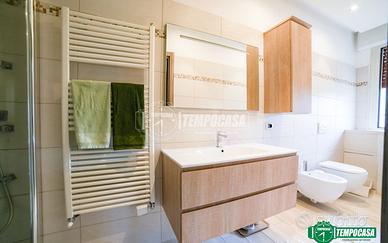 La soluzione presenta una pavimentazione in gres porcellanato, infissi in alluminio con triplo vetro e riscaldamento centralizzato con termovalvole. Completano la proprietà l'impianto di condizionamento, un sistema di ventilazione forzata (particolarmente utile se utilizzata come seconda casa), una cantina di pertinenza e un box auto ampio, elementi che garantiscono il massimo comfort.