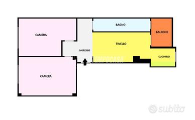 Ingresso su Comodo Disimpegno che collega tutti gli ambienti della casa, separando la Zona Giorno dalla Zona Notte. Tinello comodamente arredabile con annesso Cucinino e accesso ad un Comodo Balcone Verandato, 2 Camere da Letto di Ottima Metratura. Bagno Finestrato con Box Doccia.
