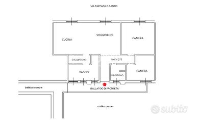 In tranquillo contesto di corte, proponiamo appartamento trilocale di 86 mq, completamente ristrutturato e situato al primo piano.