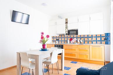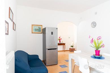 Propongo appartamento con ingresso autonomo, 2 stanze da letto, cucina soggiorno, bagno e lavanderia, per un totale di circa 80 mq. L'appartamento è dotato di riscaldamento autonomo e degli elettrodomestici più comuni (frigo, forno tradizionale e a microonde, lavastoviglie, lavatrice e ferro da stiro).
