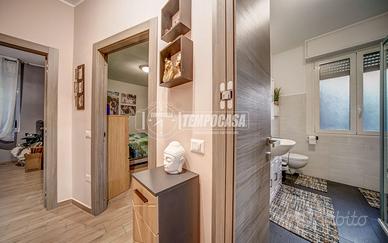 L'abitazione si compone di ampio ingresso su zona giorno con spazio living con accesso al balcone e cucina separata (con ripostiglio/dispensa), un disimpegno conduce nella zona notte con bagno moderno e finestrato, una camera matrimoniale ampia e luminosa, una cameretta e un'ulteriore stanza utilizzabile come studio, stanza jolly o cabina armadio.