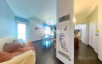 Proponiamo IN ESCLUSIVA trilocale Ristrutturato, composto da ingresso, ampia zona giorno living con cucina a vista, due camere spaziose, due bagni, tre balconi e cantina al piano interrato. L'immobile gode di doppia esposizione, porta blindata,