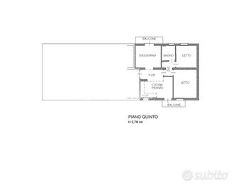 -INTERNO: Appartamento posto al 5 e ultimo piano con ascensore, composto da: Ingresso con cucina e balcone, soggiorno con ulteriore balcone, due camere da letto, un bagno e un ripostiglio.